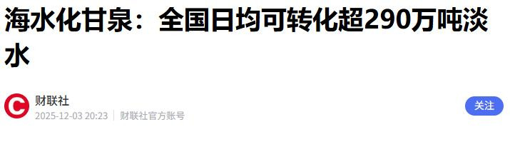 财联社 2025-12-03——海水化甘泉:全国日均可转化超290万吨淡水